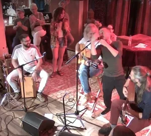 Y yo, Cana, guitarra y voz solista también, aporto mis canciones, mi flamenco y todo el agradecimiento y la pasión que me sale al tocar con estos musicazos y mejores personas.